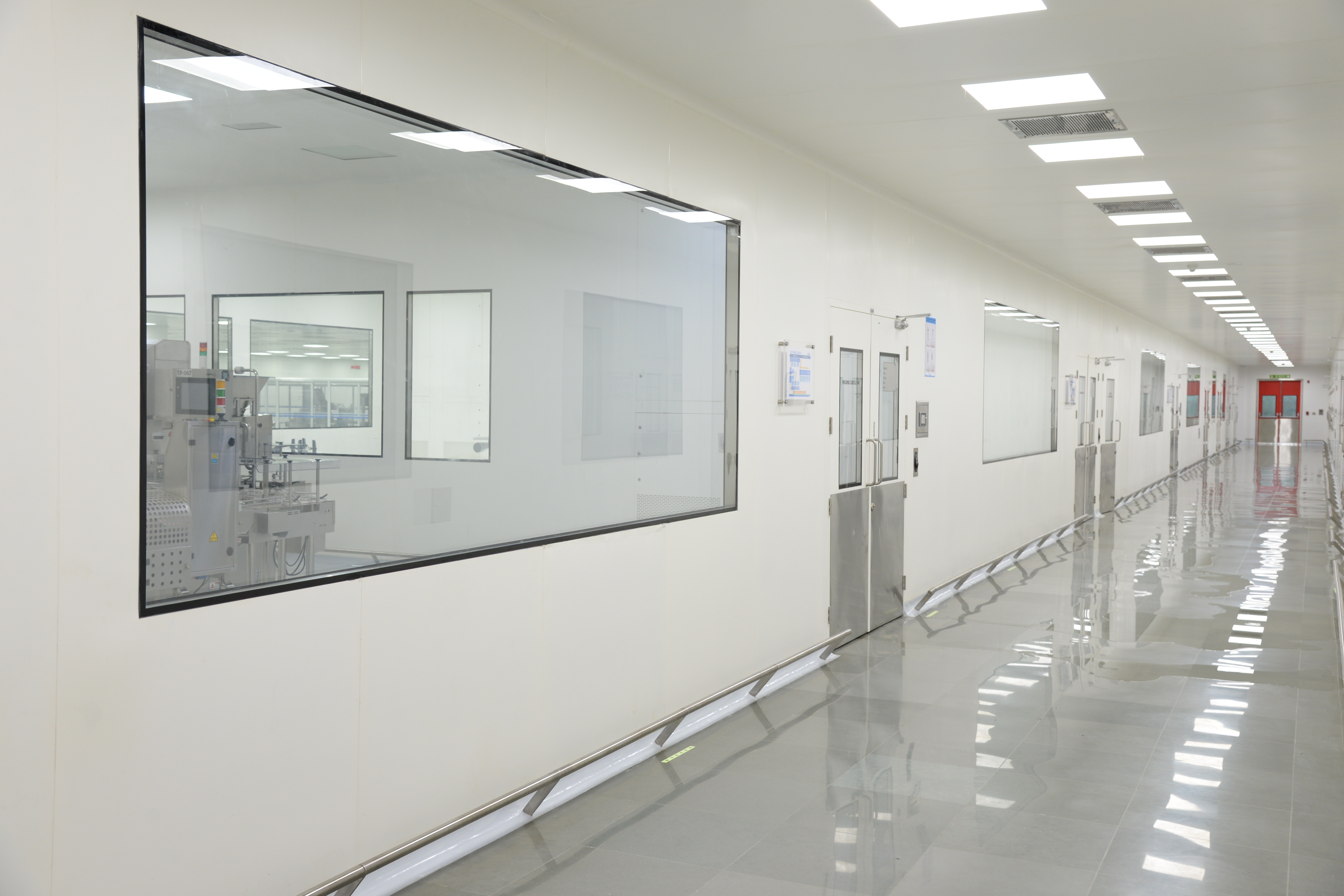 洁净室之间连通的大型设备的施工也比较困难,如传递窗和灭菌器等。一般这些设备在设计时都是考虑在正压 房间内使用,密封性不会做得太好,所以要全面检查设备 的密封性。其中,设备外框、门边密封条、把手、设备仪 表等位置,是产生泄漏的重点部位。此外,设备嵌入墙体的结合部位也要重点关注,做好密封工作。